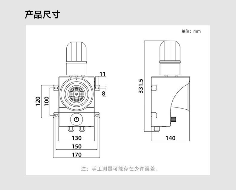 • 工作时报警音高达120分贝,嘈杂环境下仍能清晰播报语音提示
